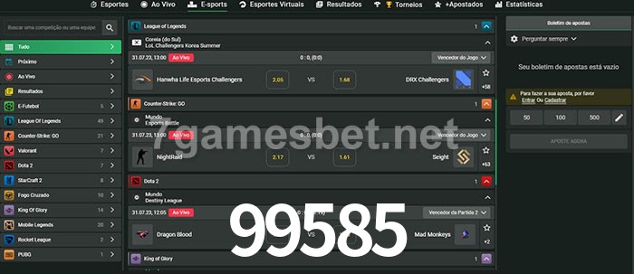O 99585 oferece uma grande seleção de opções de apostas em e-sports com probabilidades competitivas